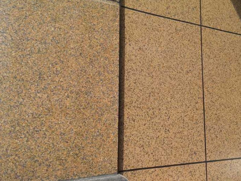 在喷真石漆面漆前将真石漆表面有锐角之颗粒磨平约30-50%,可增加碎石美感及减少锐利并避免灰尘责留。