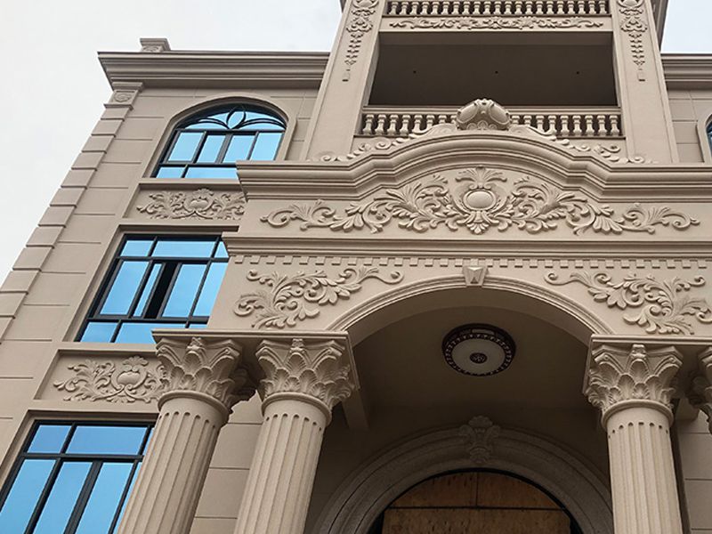 仿天然花岗岩石外观气派非凡,可变换喷涂方法喷出不同造型和花样色彩。